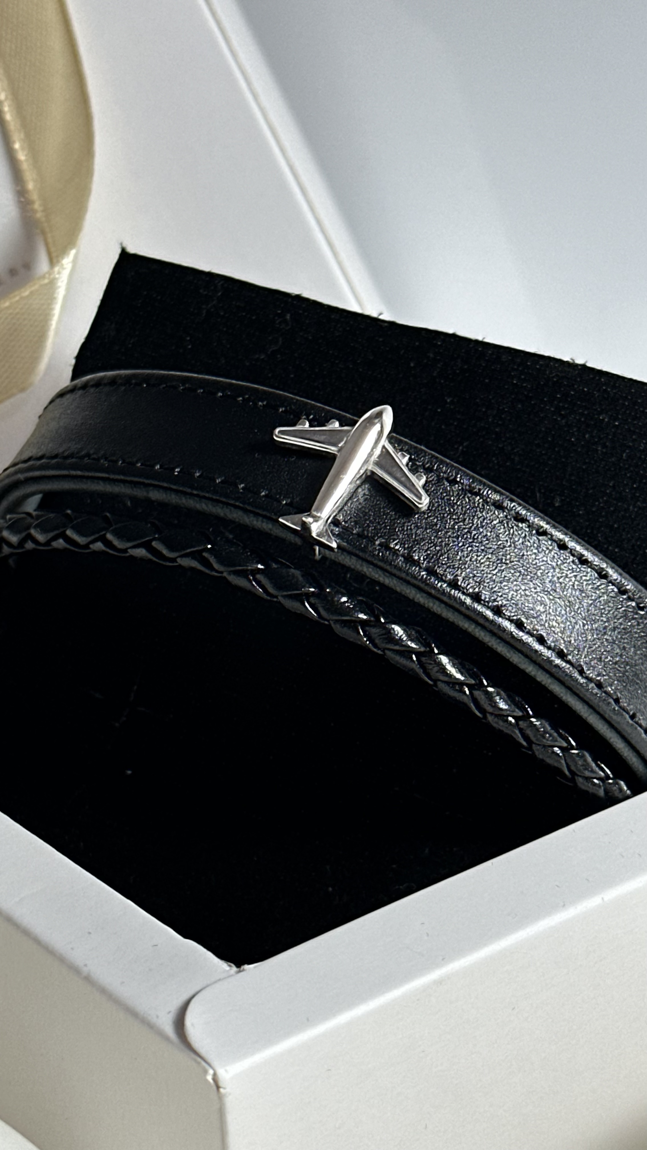 دستبند چرم طبیعی با هواپیمای نقره سه بعدی با آبکاری رادیوم