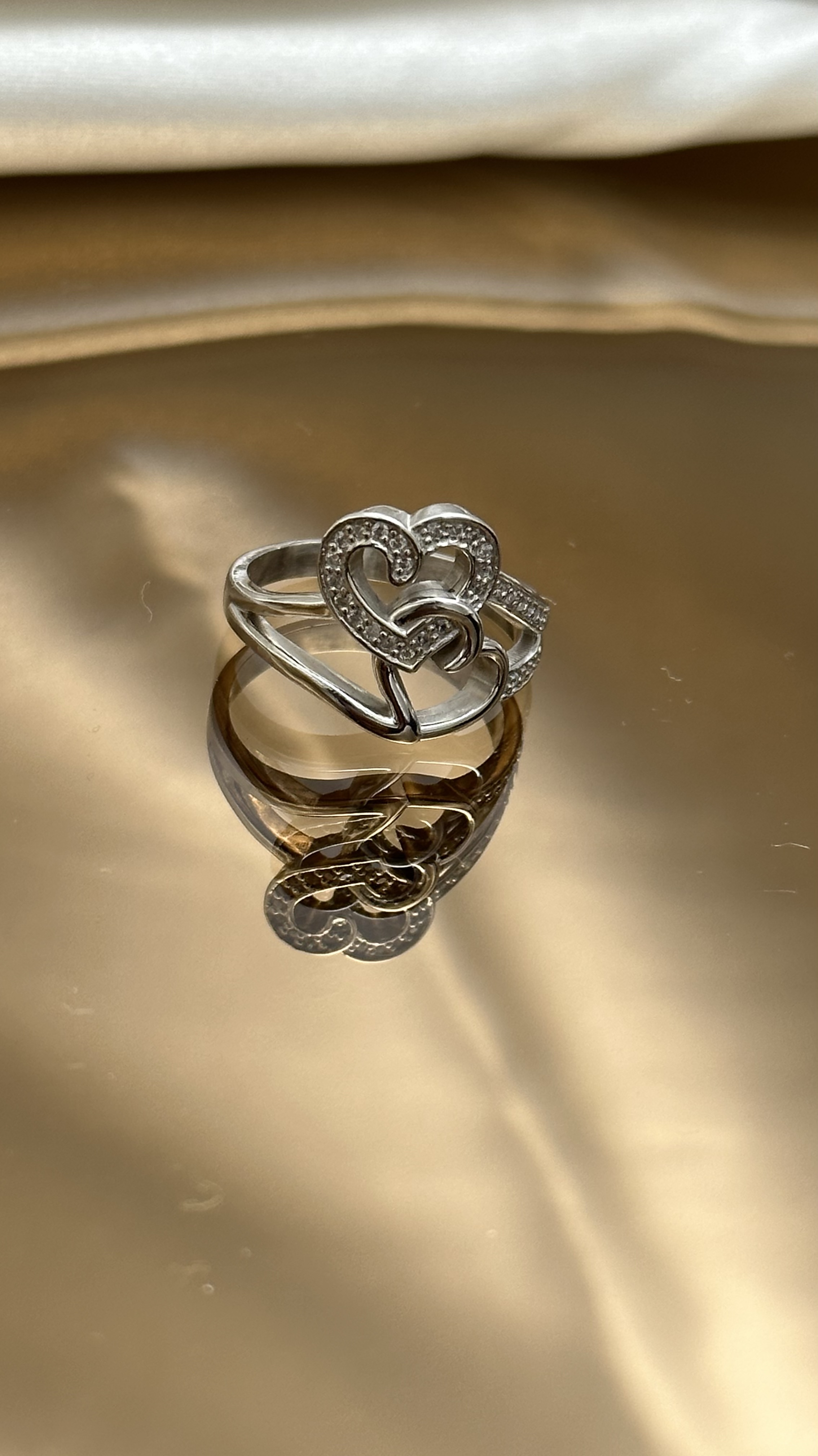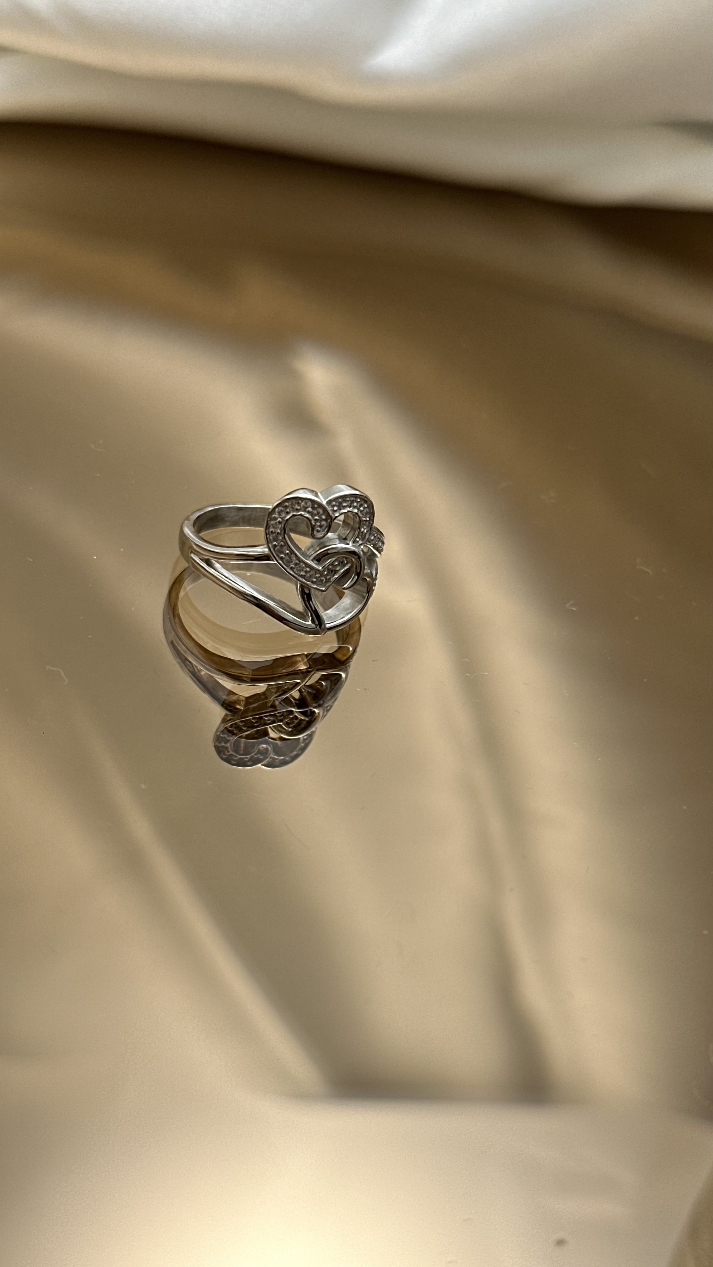 انگشتر قلب نقره با آبکاری رادیوم (طلا سفید)