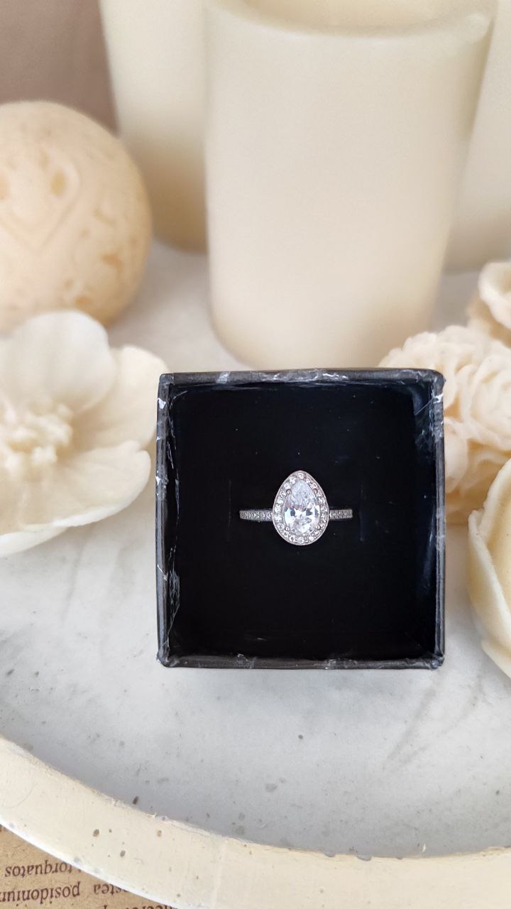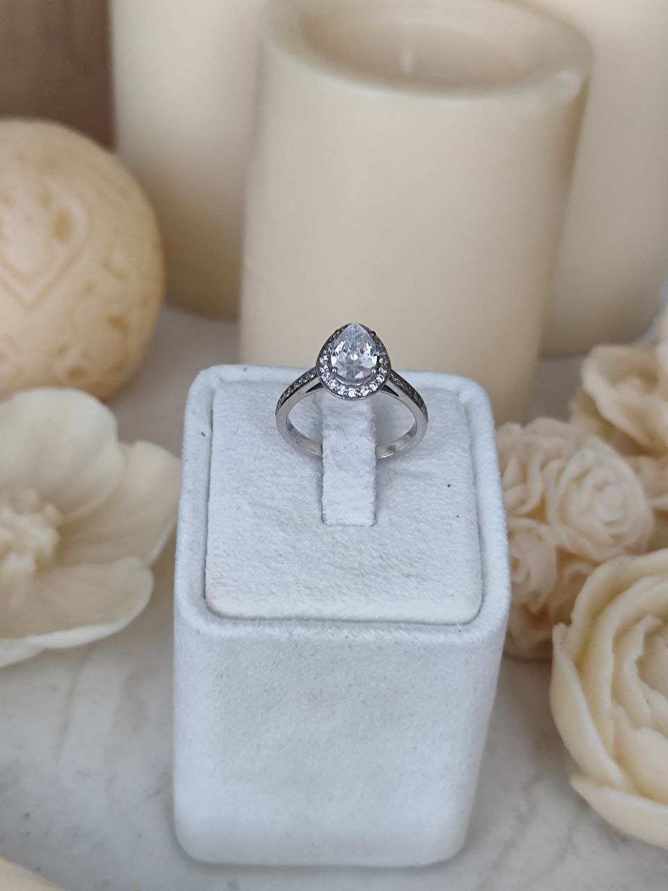 انگشتر اشکی نقره با آبکاری رادیوم و سنگ درجه یک
